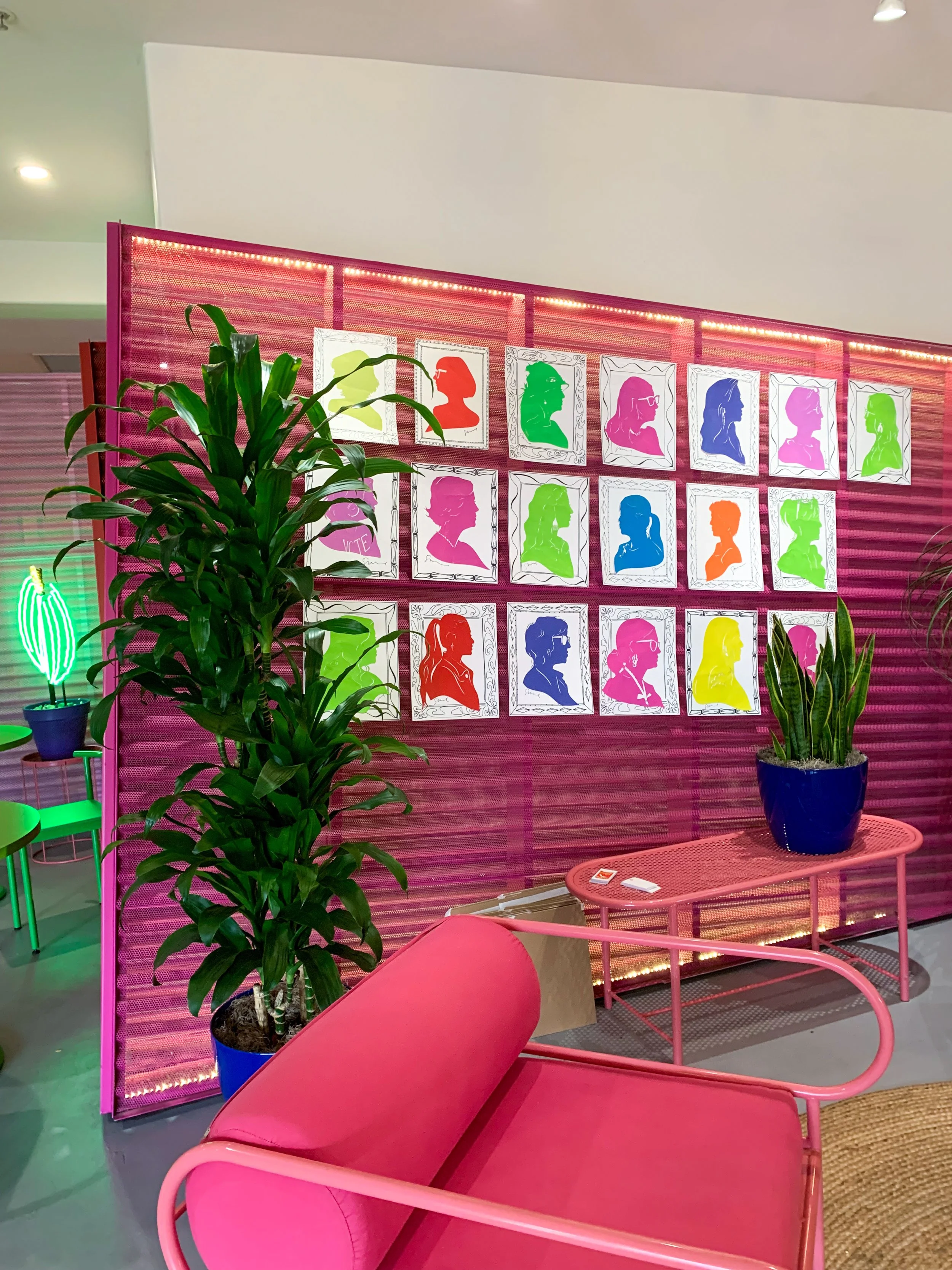 In planning every event, I take time to understand your values, needs and goals. From minimal monochrome ink drawings at a warehouse party in New York, to playful bold cutouts displayed at the Saguaro Hotel in Palm Springs, I tailor each experience, portrait display and artwork style to complement your brand or theme.